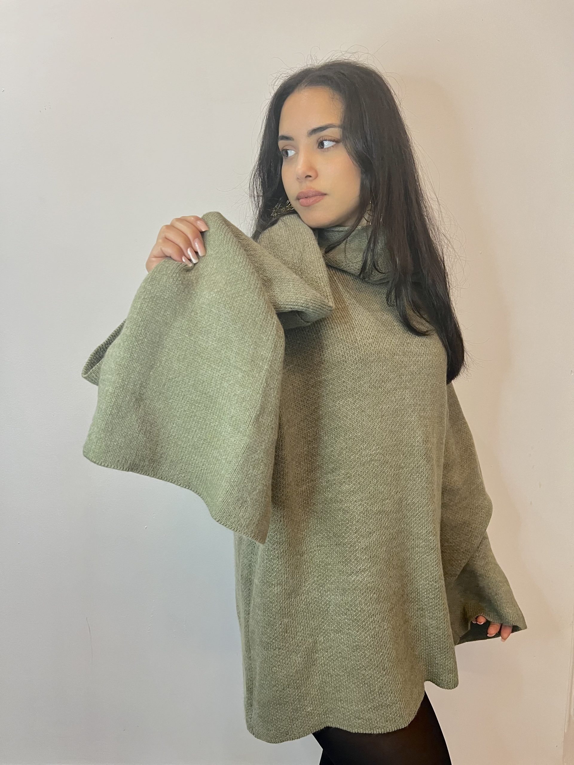 Pull en maille verte avec écharpe intégrée